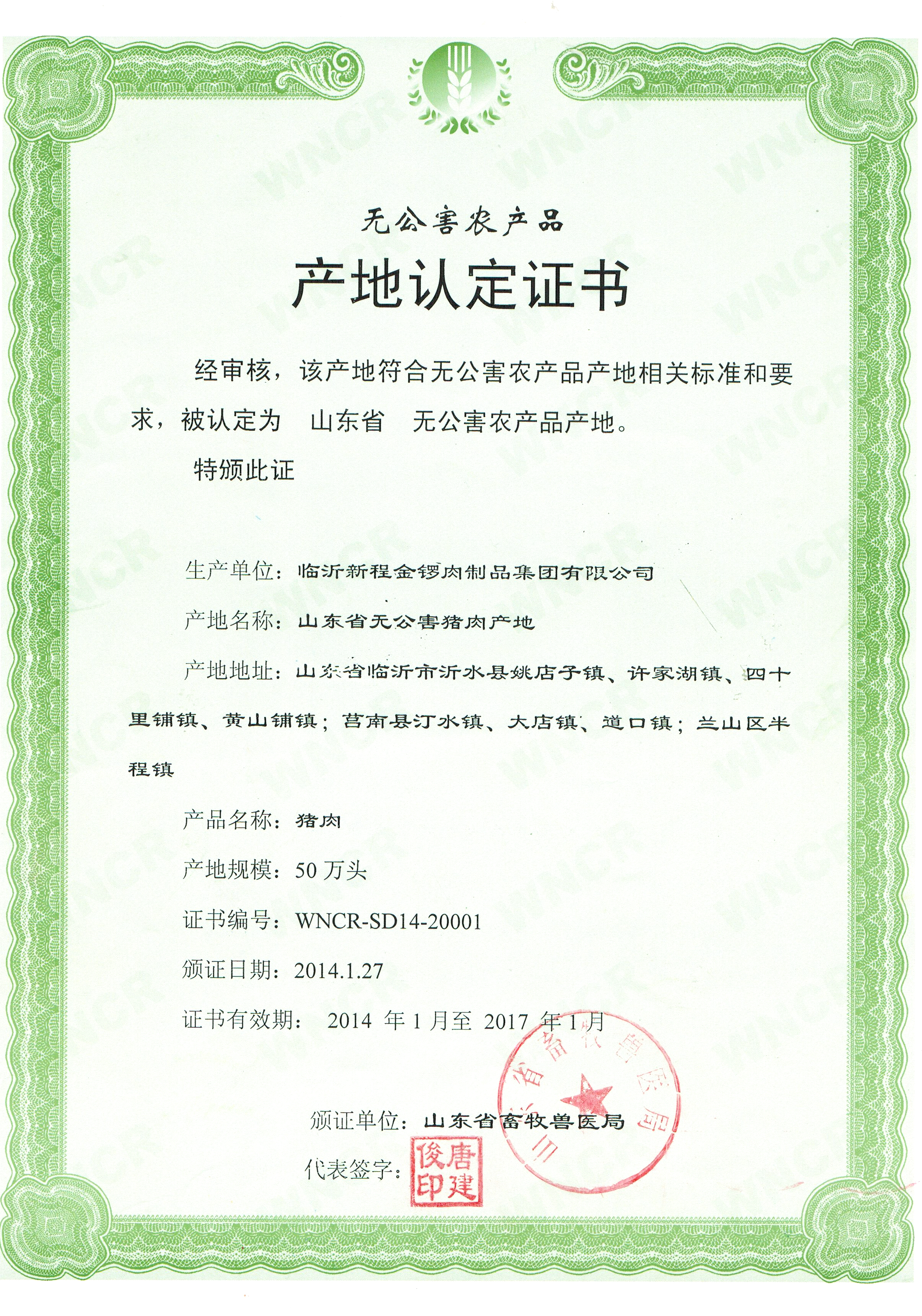 無公害產(chǎn)地認(rèn)定證書