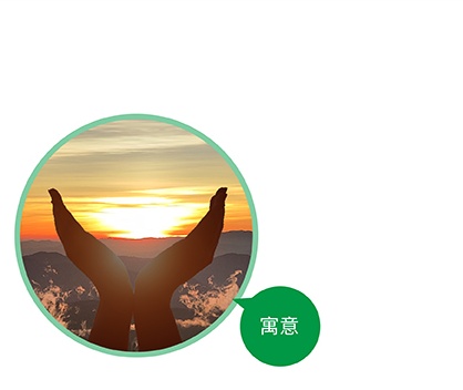 金鑼人用雙手托起一輪火紅的太陽